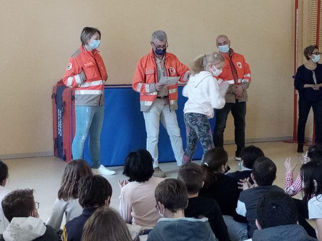 Nos élèves de CM2, dans le cadre de leur PARCOURS CITOYEN, vivent des séances de formation secourisme avec des intervenants de la Croix Rouge Française.