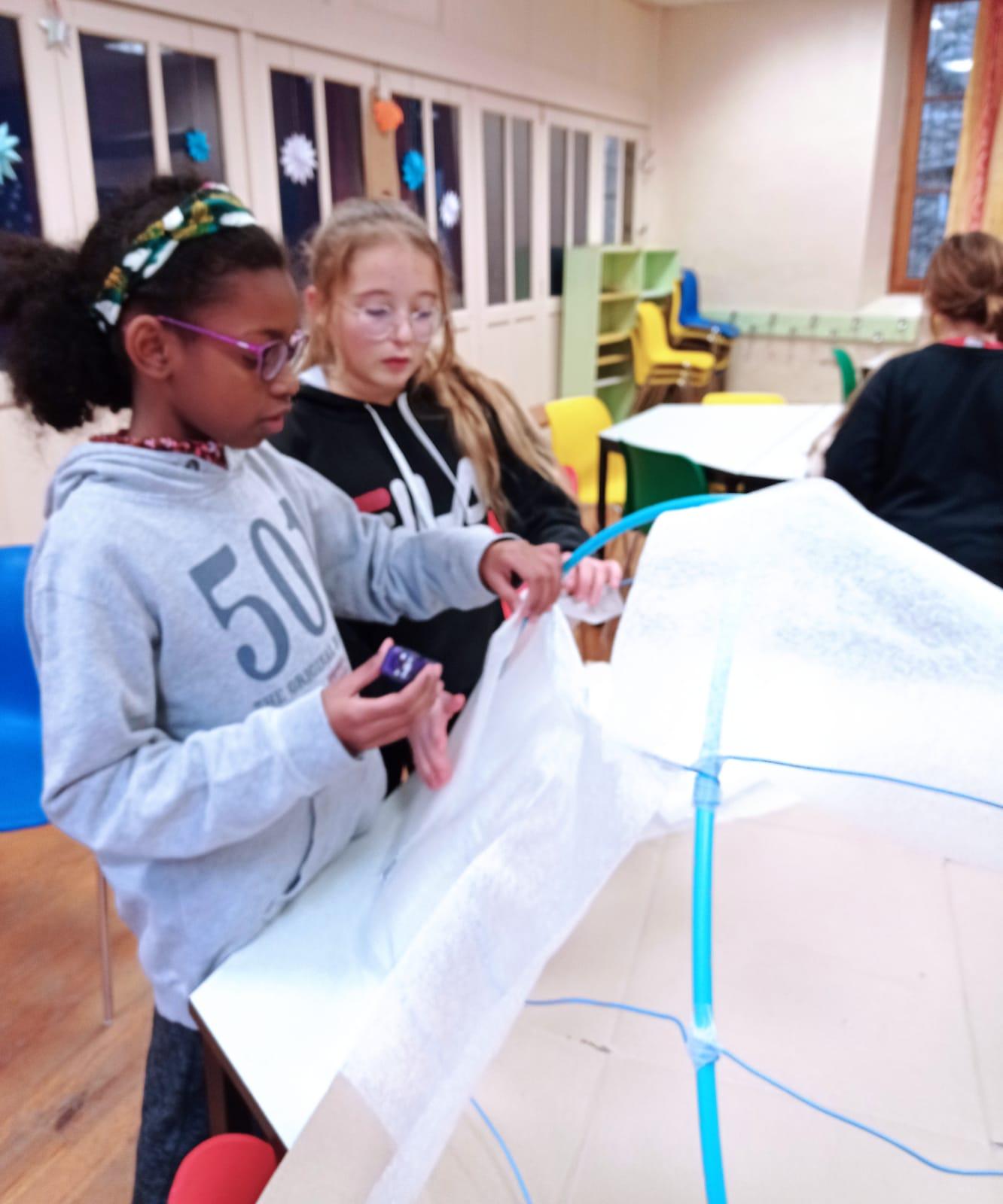 Grâce aux AESH de l'école, nos élèves ont la chance de pouvoir exercer leur talent d'artiste-bricoleur-écolo en participant à des ateliers sur la pause méridienne dans la salle Jean Berger (notre Bibliothèque).